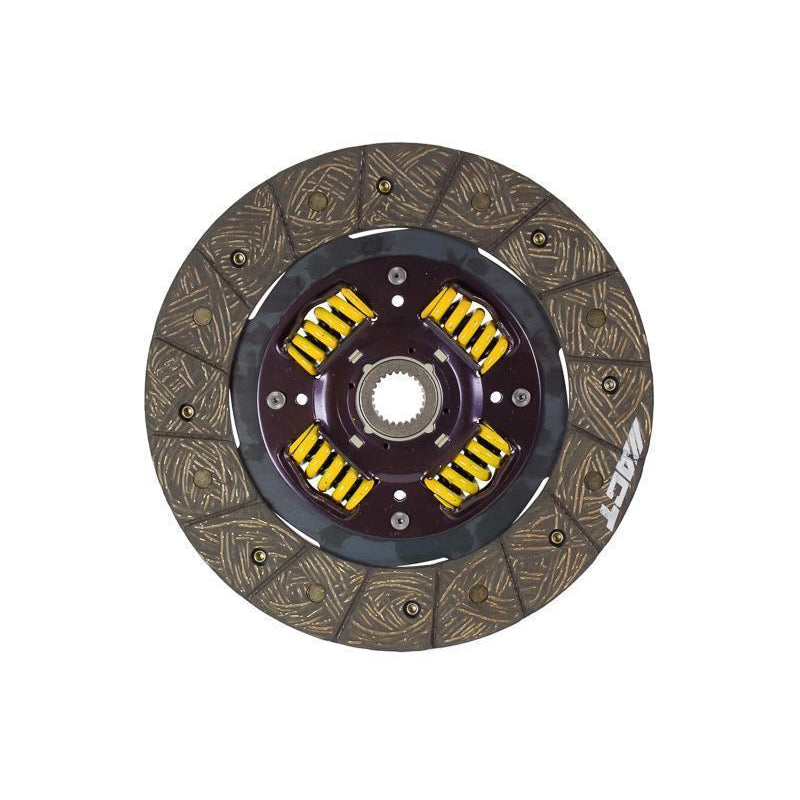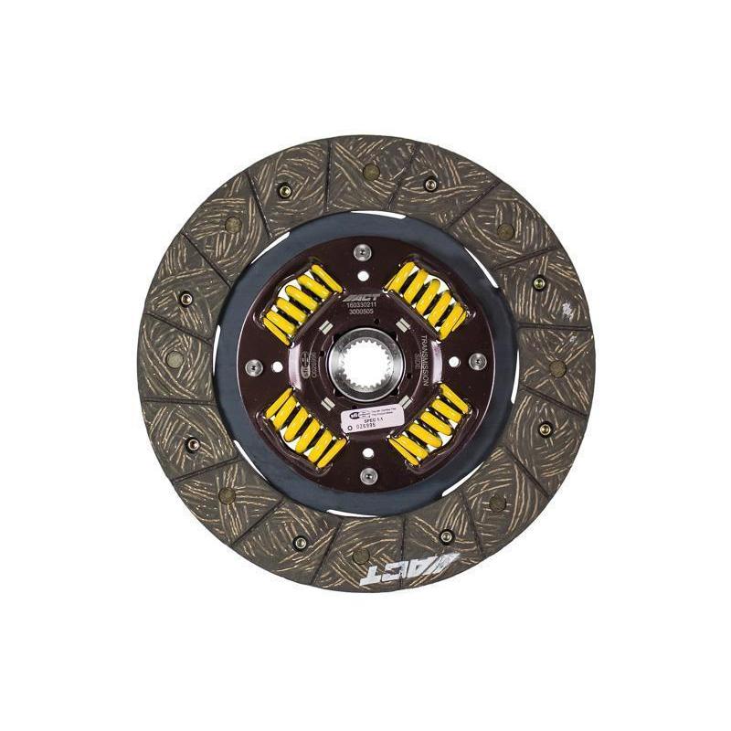 3000505 is a performance street disc and the most popular disc purchased. It features premium organic materials with high copper content for better heat transfer. Performance street discs allow for quicker shifting and smooth engagement. These discs feature a reduced marcel for faster shift action to complement ACT pressure plates. ACT spring-centered assemblies use bushings and cone springs similar to factory clutch discs. This creates frictional dampening, which improves clutch life and reduces noise. Quiet operation with increased strength and reliability.