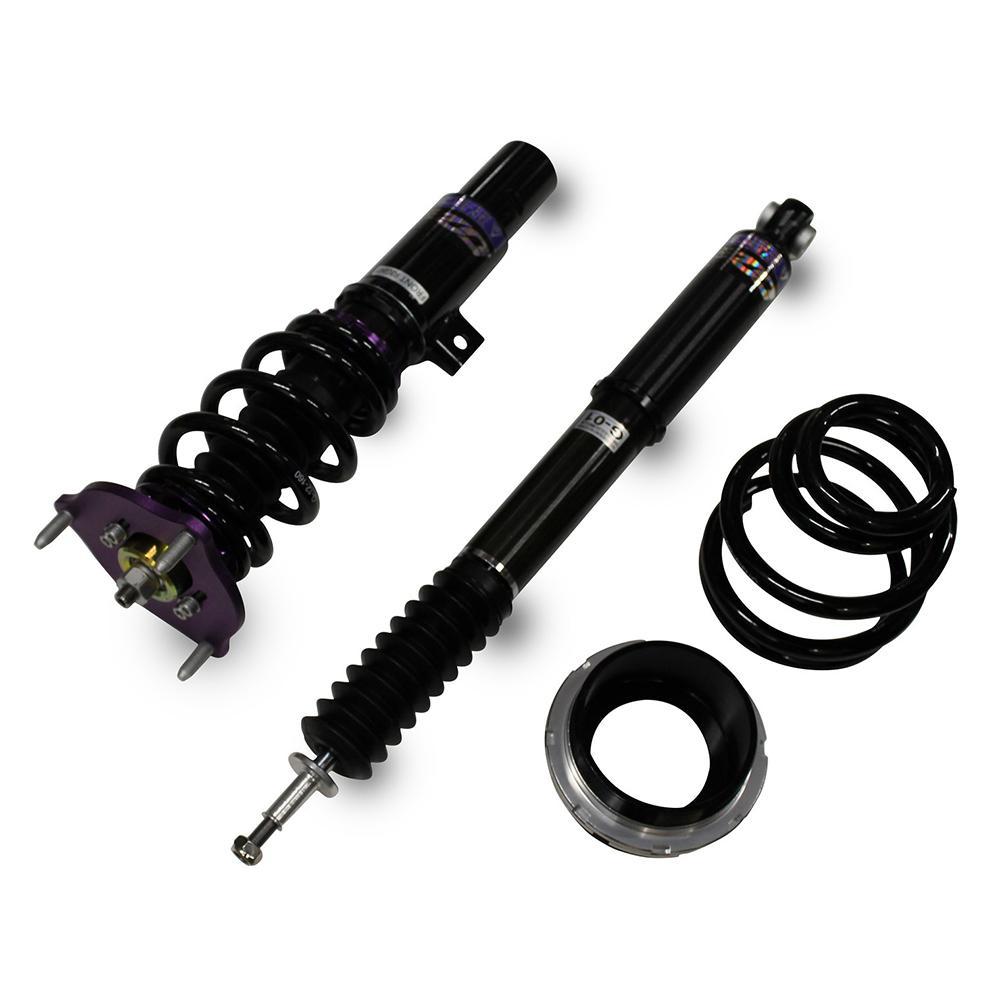 The RS Series suspension kit D2 Racing's most popular coilover. Featuring a 36-way damping and rebound adjustable monotube design, RS Series coilovers are perfect for the modified street car that also sees occasional track days. This coilover has separate height and preload adjustments allowing for optimal suspension tuning while maintaining full strut travel at all times.