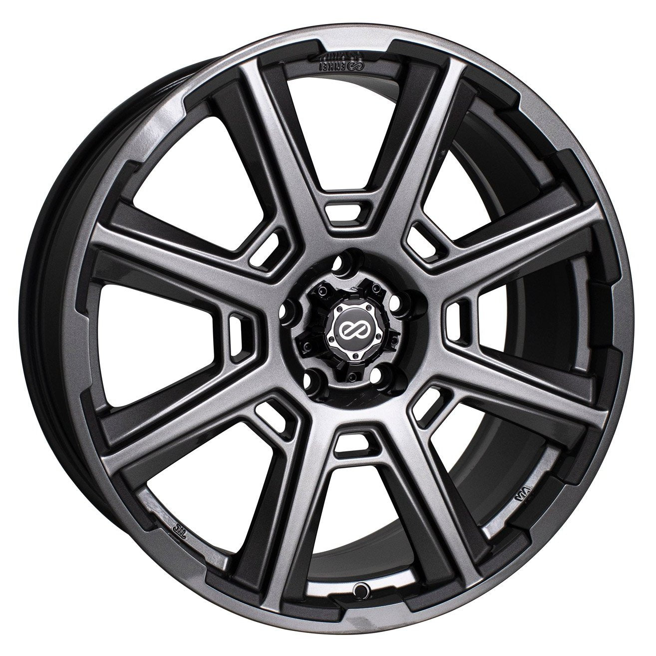 Enkei Luxury Series Wheels are Spec-E: All Enkei wheels are engineered to pass rigorus testing. In fact, Enkei established its own test standard called "Spec-E," which is tougher than JWL requirements. Enkeis Spec-E Testing setting requires a higher drop point in the impact test and 20% more cycles for the rotary bending fatigue and dynamic radial fatigue tests than JWL standards. The Spec-E represents Enkeis confidence in its technology and quality of Enkei wheels.