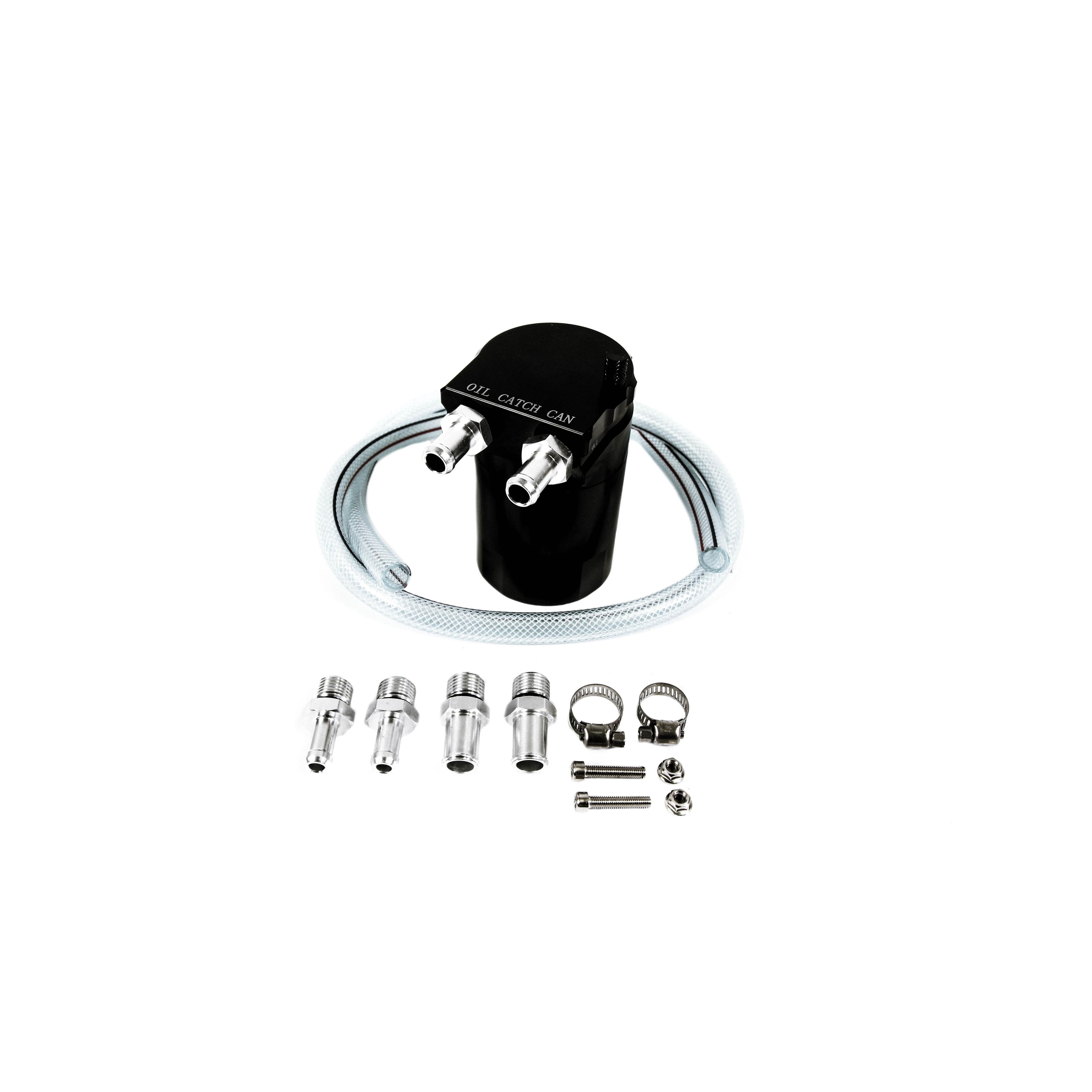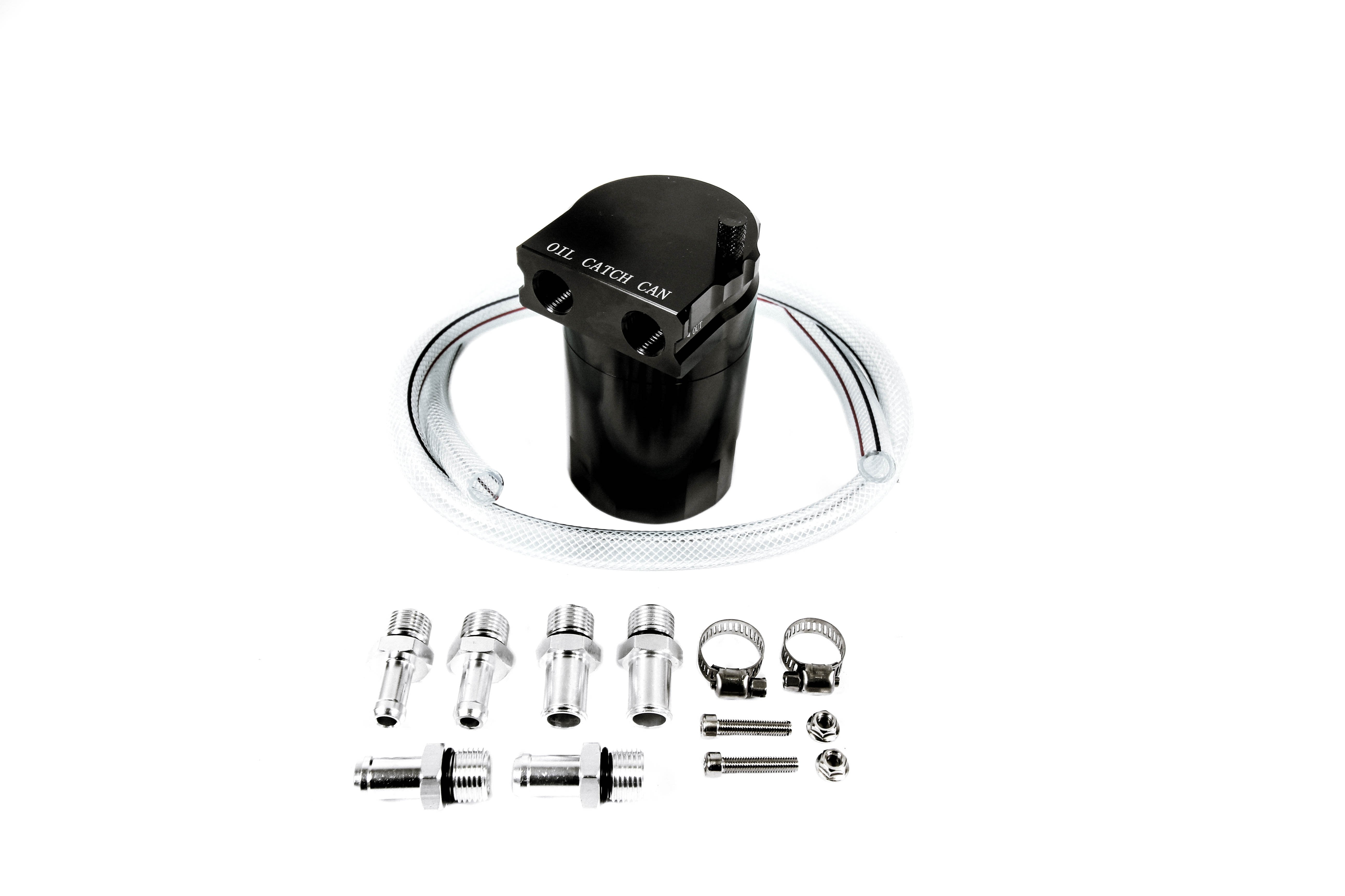 This PLM baffled oil catch can is designed to collect oil and blow by gases from PCV valve or engine valve cover going to the intake system that causes carbon and sludge build-up.